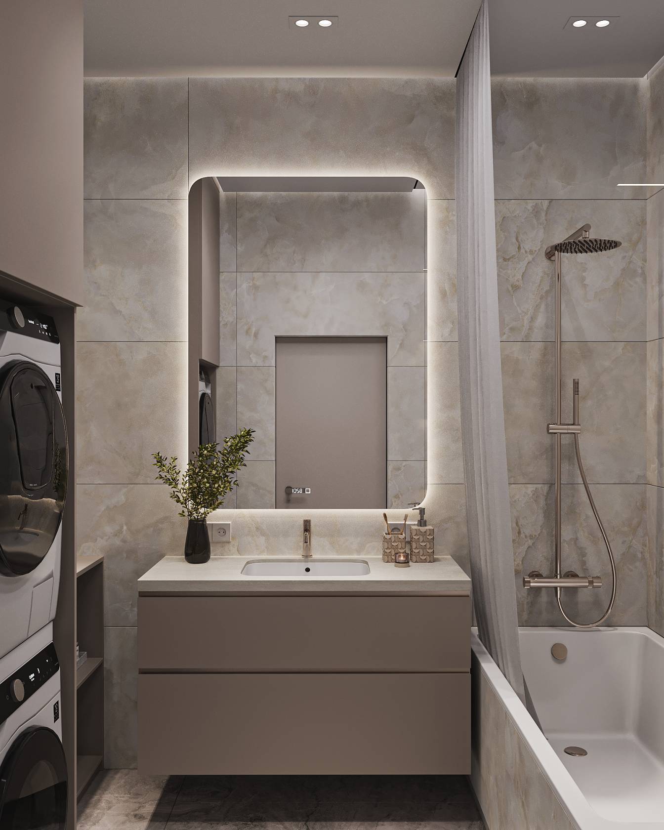 Проект квартиры в ЖК «Войстройченко 10» площадью 70 м² выполнен в современном стиле с акцентом на функциональность и комфорт. Пространство организовано логично и удобно для повседневной жизни. Кухня-гостиная совмещена, создавая просторную зону для общения и отдыха. Спальня и детская обеспечивают уединение и уют. Прихожая компактная, с достаточным местом для хранения. Санузел и ванная разделены для удобства всех членов семьи. Лоджия интегрирована в общий облик квартиры, расширяя жилое пространство.